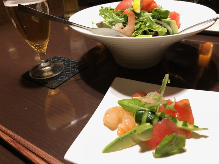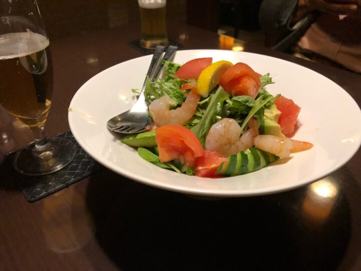エビとアボガドの柑橘サラダです。