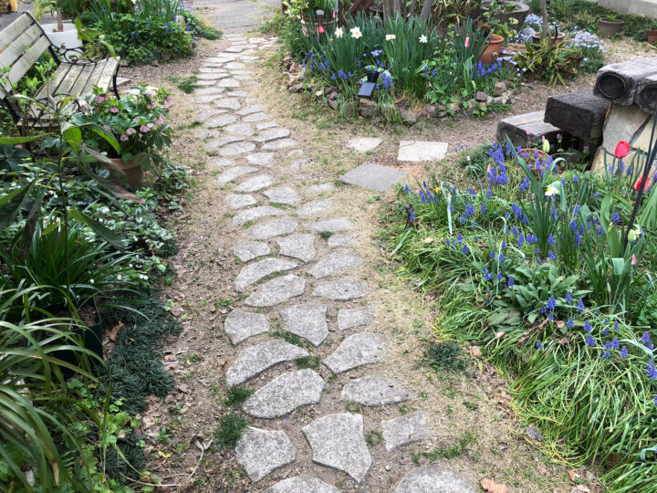 庭の小径もデッキも夫と二人で造りました。