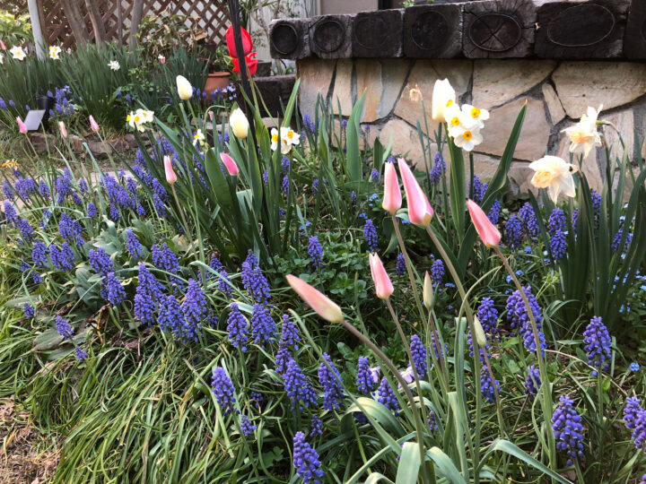 ムスカリとハナニラは、暑さ寒さもへっちゃらで、ものすごい勢いで増殖中です。