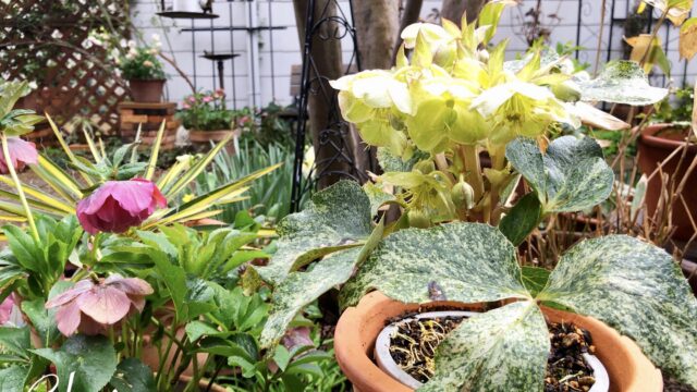2019年3月11日 / 最終更新日時 : 2021年9月9日 月乃 ガーデニング クリスマスローズの季節 庭はクリスマスローズの花盛りです。 本当は先週末から水仙が咲き始めたので、急いで記事にします(汗) 右手の白いお花は、アグチフォリウス スノーフィーバーです。 斑入りの葉が美しく、花が咲いていない時期でもカラーリーフとし […]