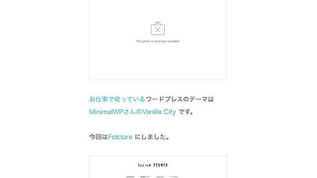 2017年10月17日 / 最終更新日時 : 2025年5月29日 月乃 WordPressメモ flickr pressで貼った画像が消えてた! 今朝、iPhoneでPEEWEEを確認したら、一枚の画像が消えていました! 画像には「 This photo is no longer available 」とありました。 この写真は使えませんと言う意味で […]